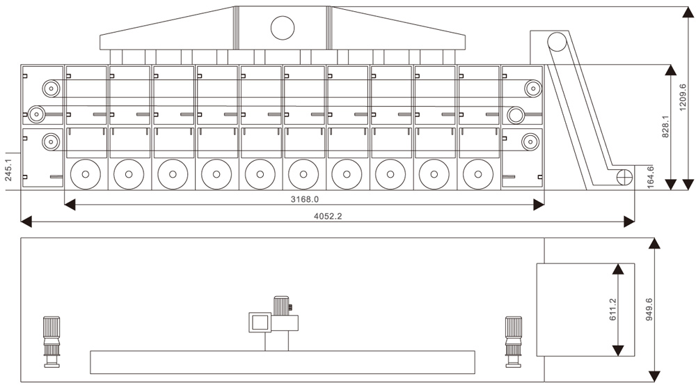 The material is evenly laid on the mesh belt by the feeder, and the mesh belt is generally made of 12-60 mesh stainless steel wire mesh, which is dragged by the transmission device and moved inside the dryer. The dryer is composed of several units, each with independent circulation of hot air. Part of the exhaust gas is discharged by a dedicated wet fan, and the exhaust gas is controlled by a regulating valve. The hot air passes through the mesh belt covered with materials from bottom to top or from top to bottom to complete the process of heat and mass transfer, taking away the moisture of the materials. The mesh belt moves slowly, and the running speed can be automatically adjusted according to the material temperature. The dried finished product continuously falls into the feeder. The upper and lower circulation units can be flexibly equipped according to user needs, and the number of units can also be selected according to needs.